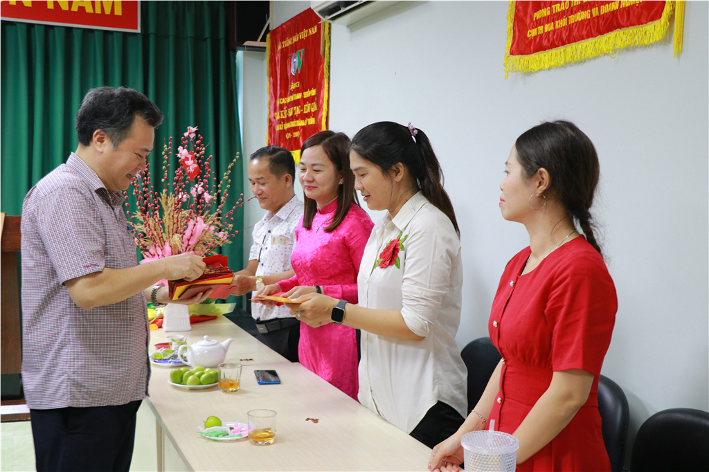 TS. Kim Ngọc Anh lì xì cho toàn thể cán bộ, viên chức và người lao động.
