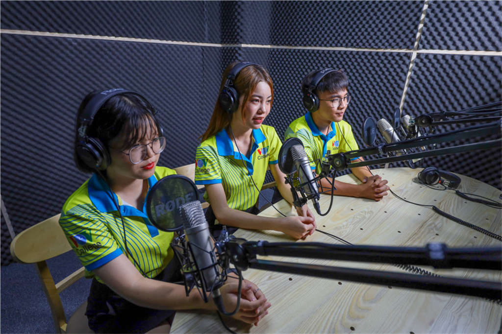 Sau khi được giảng viên hướng dẫn phần lý thuyết, sinh viên sẽ tự lên chủ đề, kịch bản, khách mời và vào phòng thu làm bài phỏng vấn phát thanh
