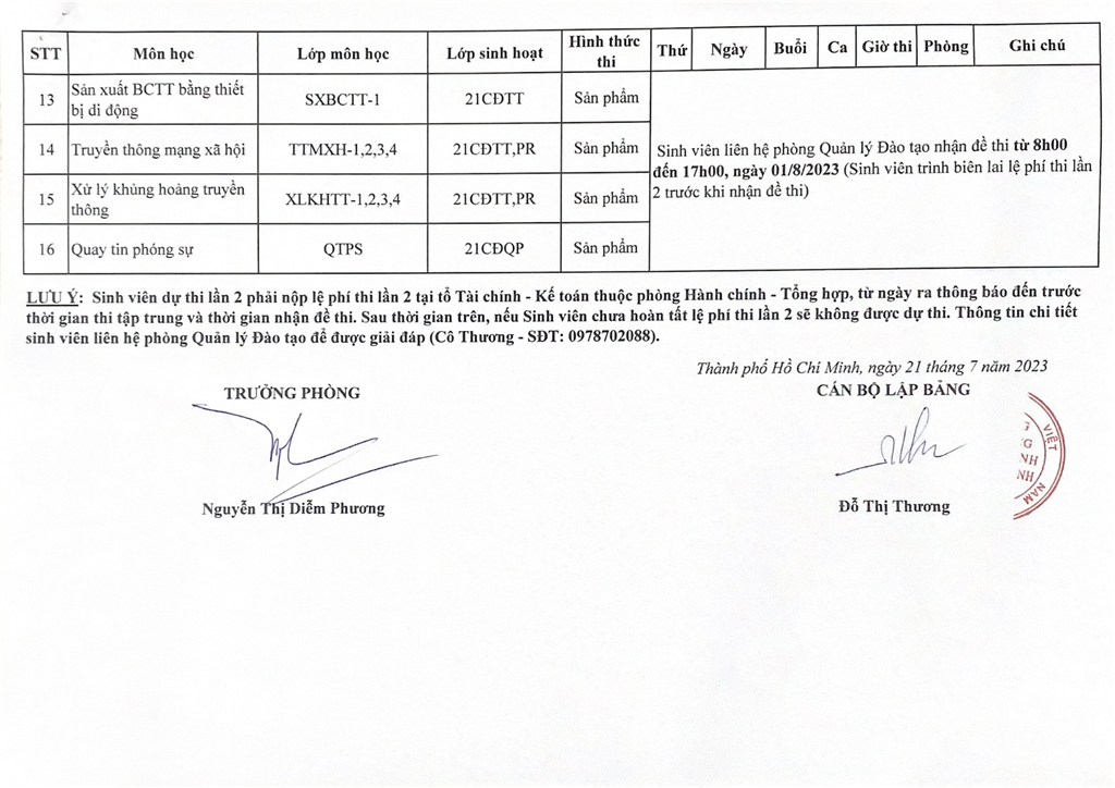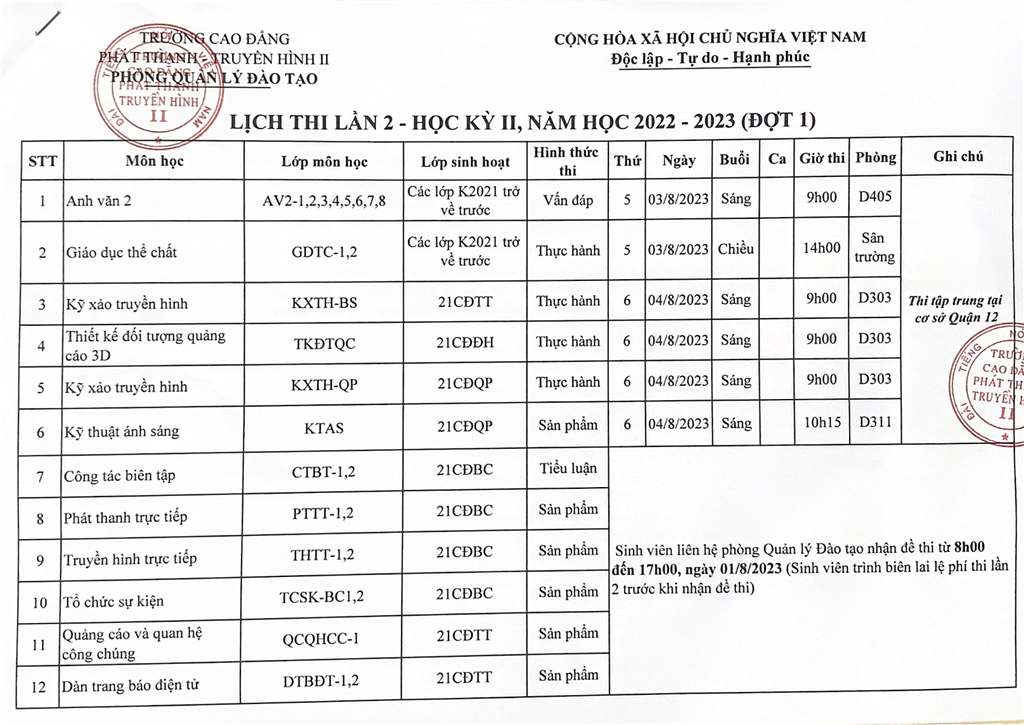 LỊCH THI VÀ DANH SÁCH DỰ THI LẦN 2, HK II, NH 2022 - 2023 (ĐỢT 1)
