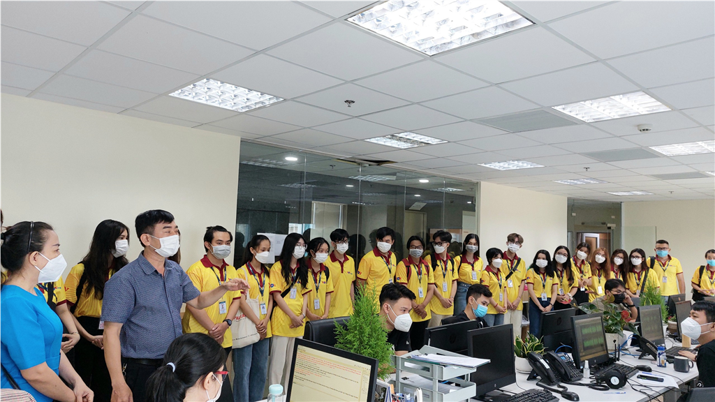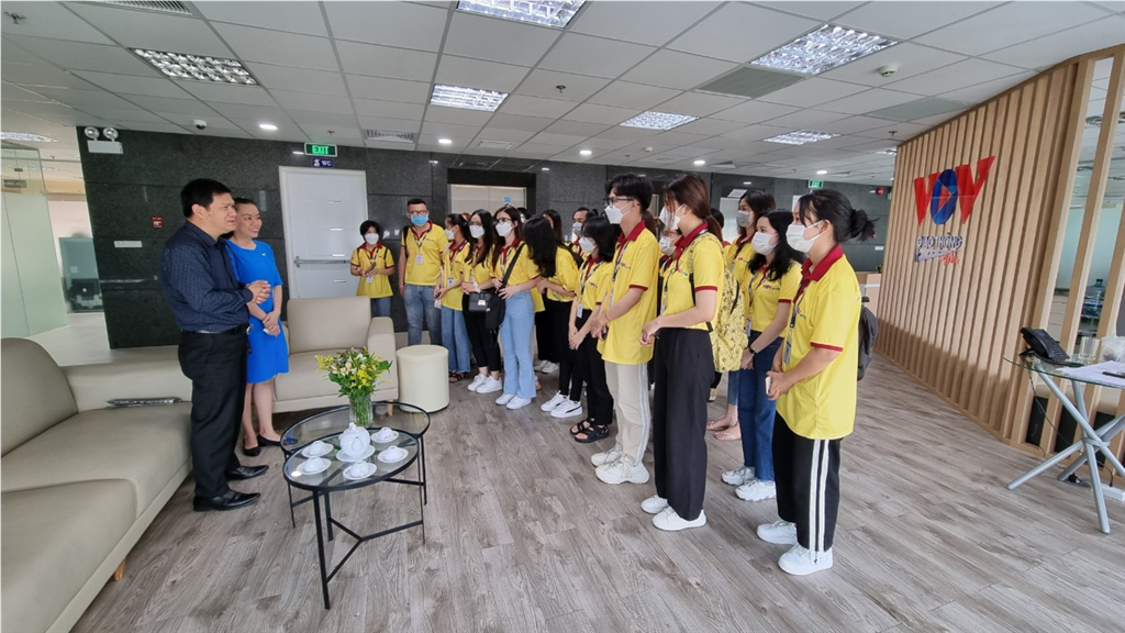 Cô Nguyễn Thị Mai Thu – Phó Trưởng khoa Báo chí và Truyền thông đưa sinh viên tham quan Trụ sở Kênh VOV Giao thông TP HCM