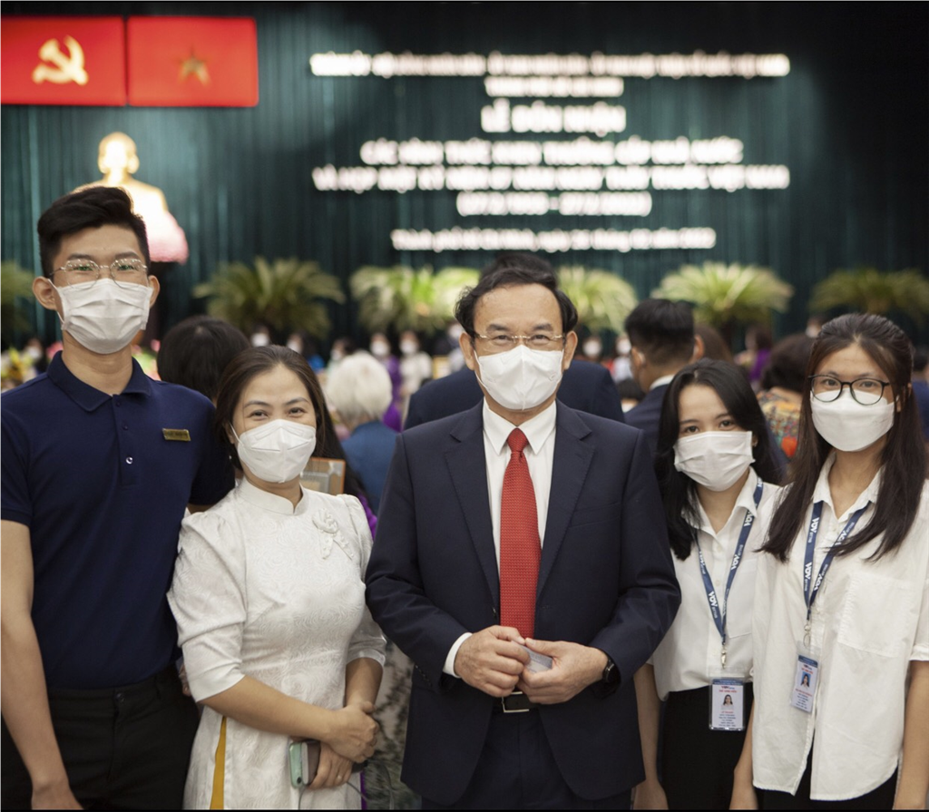 SV báo chí khóa 21 cùng Bí Thư Thành Ủy Nguyễn Văn Nên tại Lễ đón nhận các hình thức khen thưởng cấp nhà nước và họp mặt kỷ niệm 67 năm ngày thầy thuốc Việt Nam tại Hội trường Thành Ủy Tp. HCM.