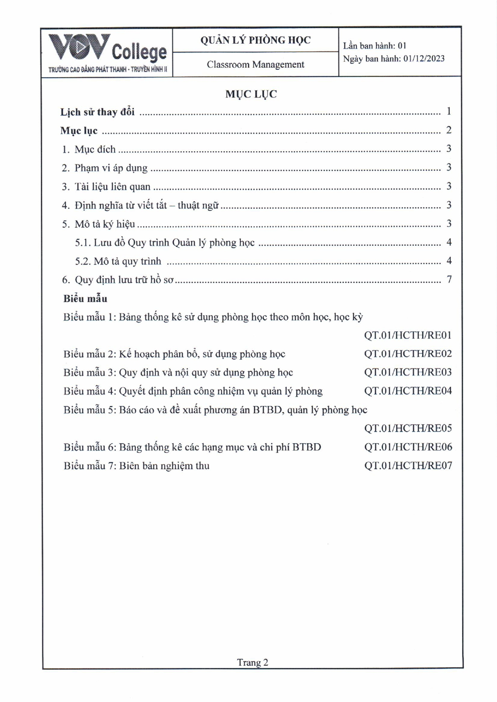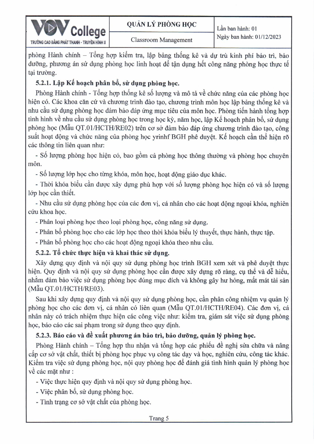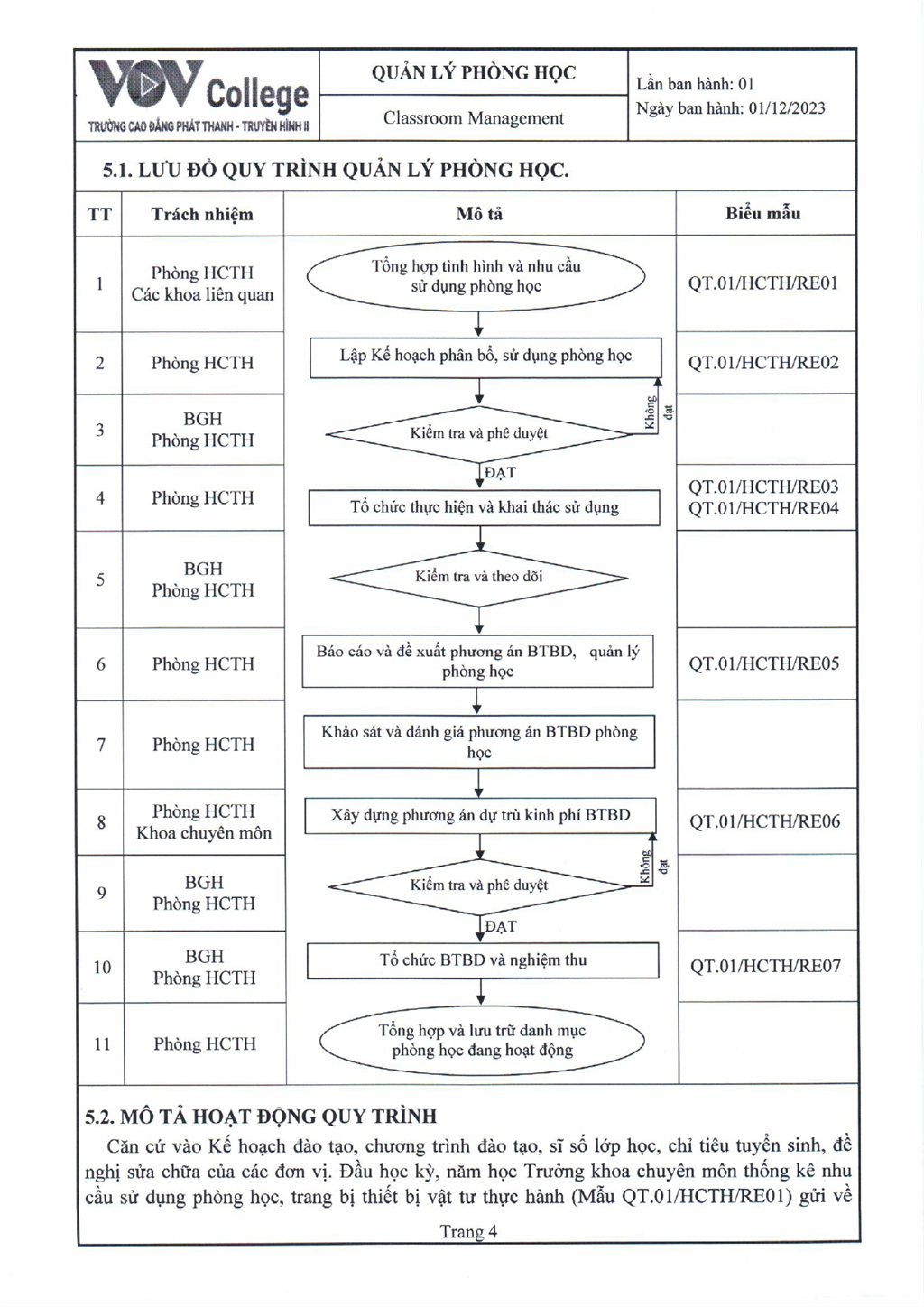 Quy trình quản lý phòng học (Tải về)