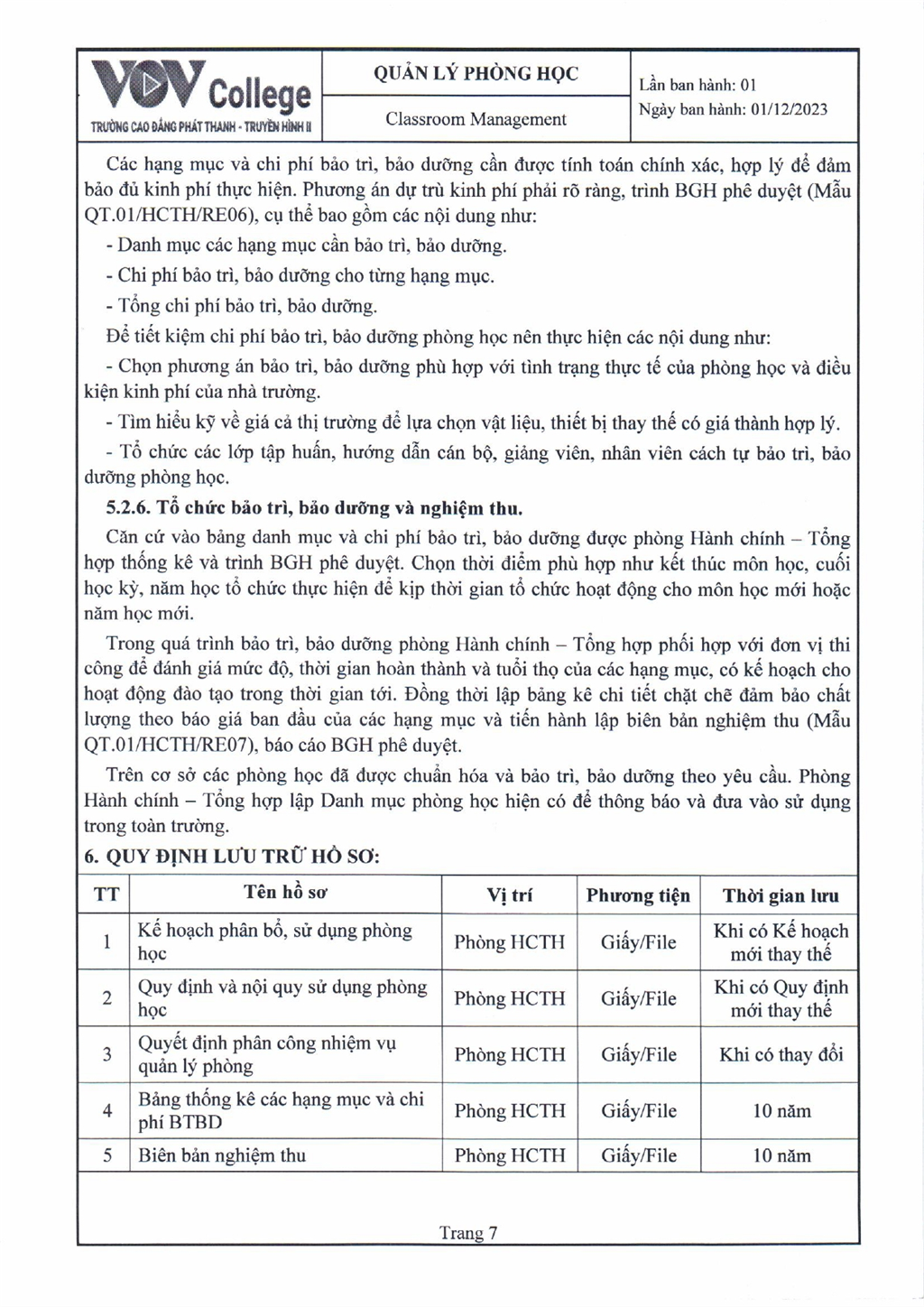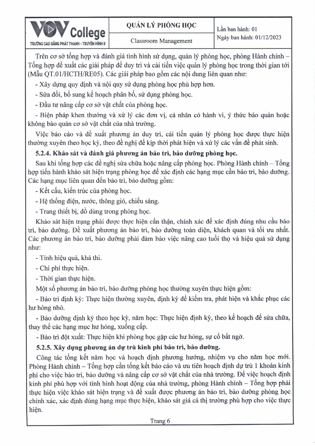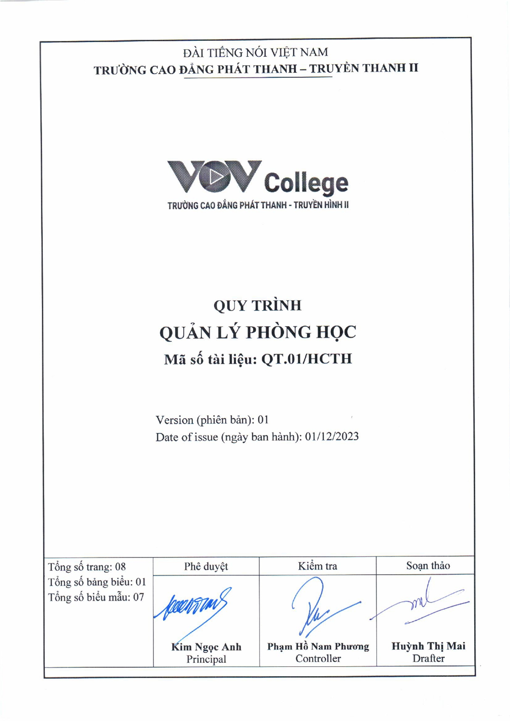 Quy trình quản lý phòng học (Tải về)