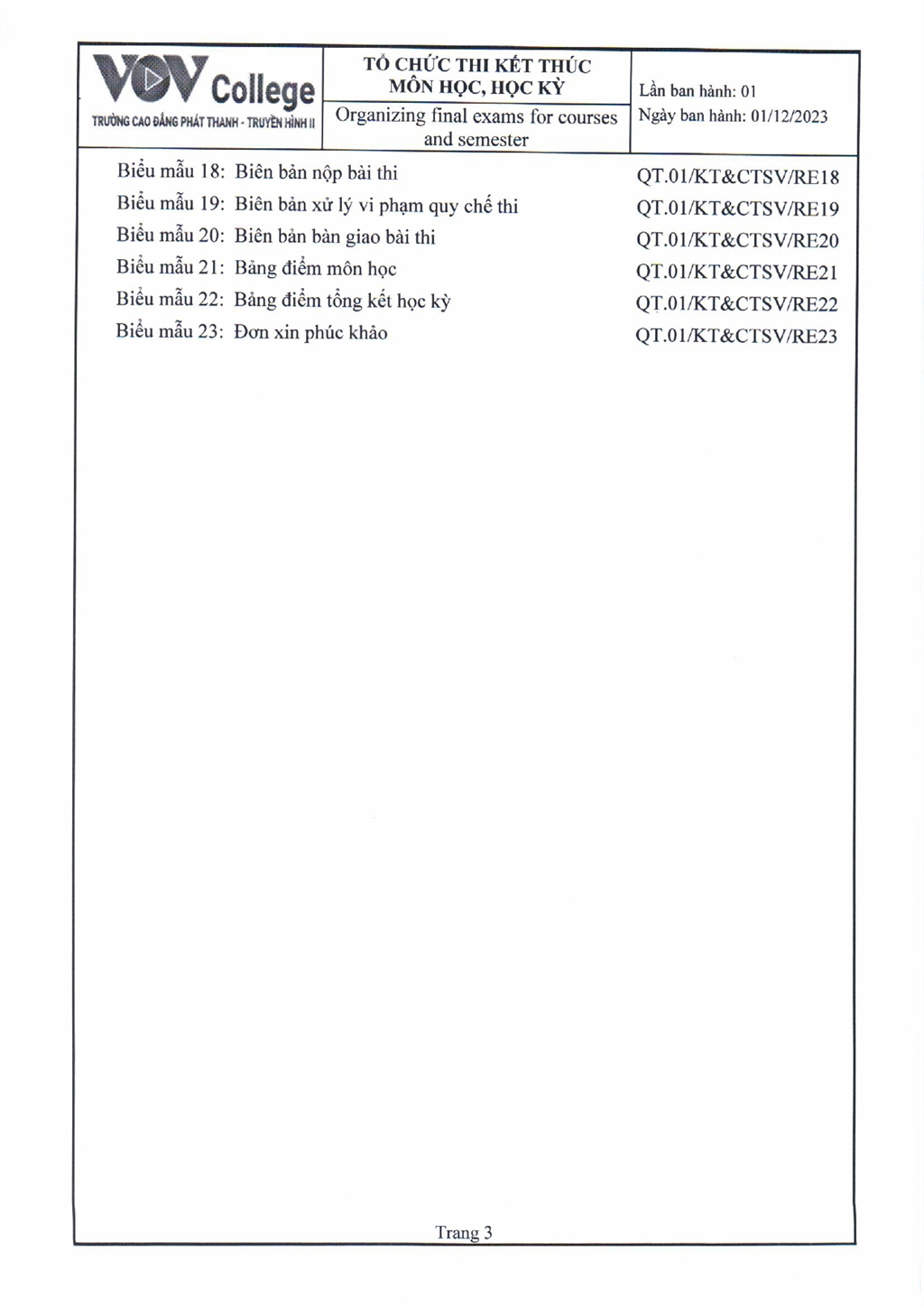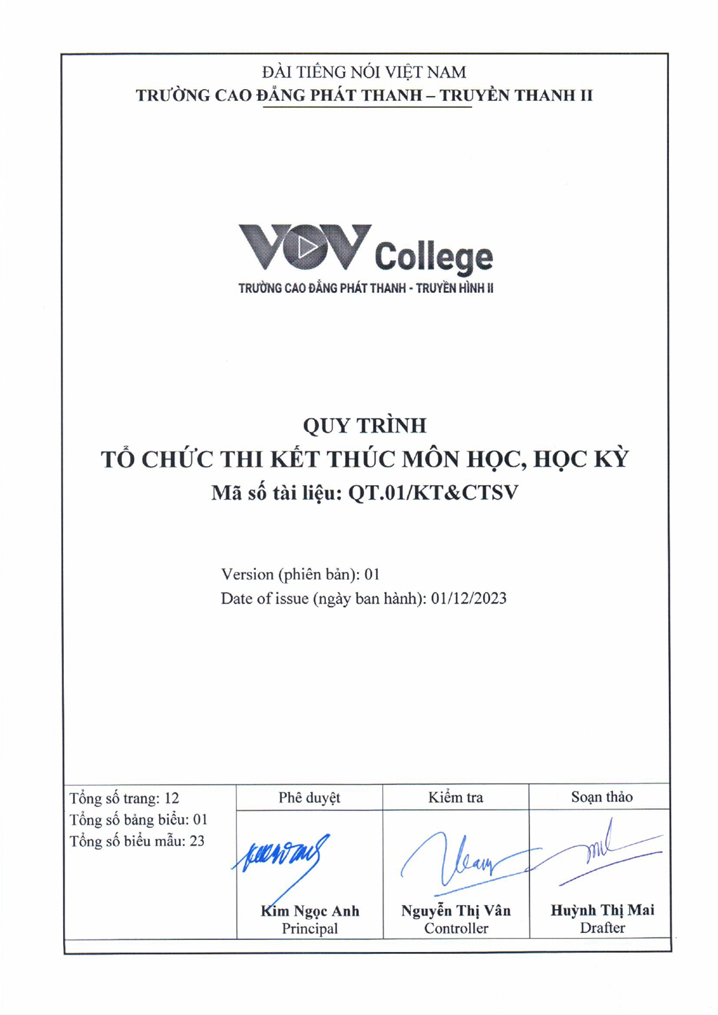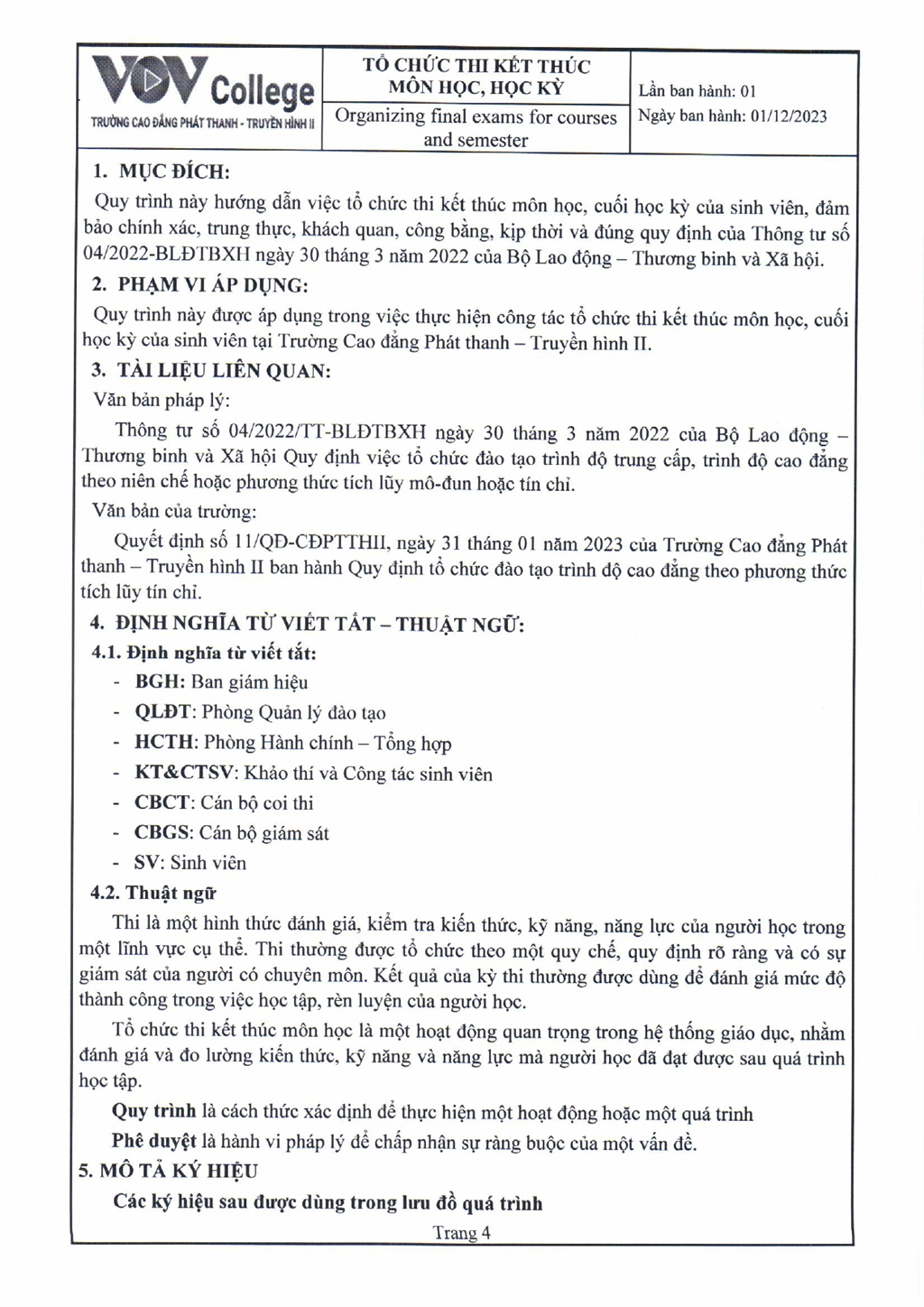 Quy trình tổ chức thi kết thúc môn học, học kỳ (Tải về)