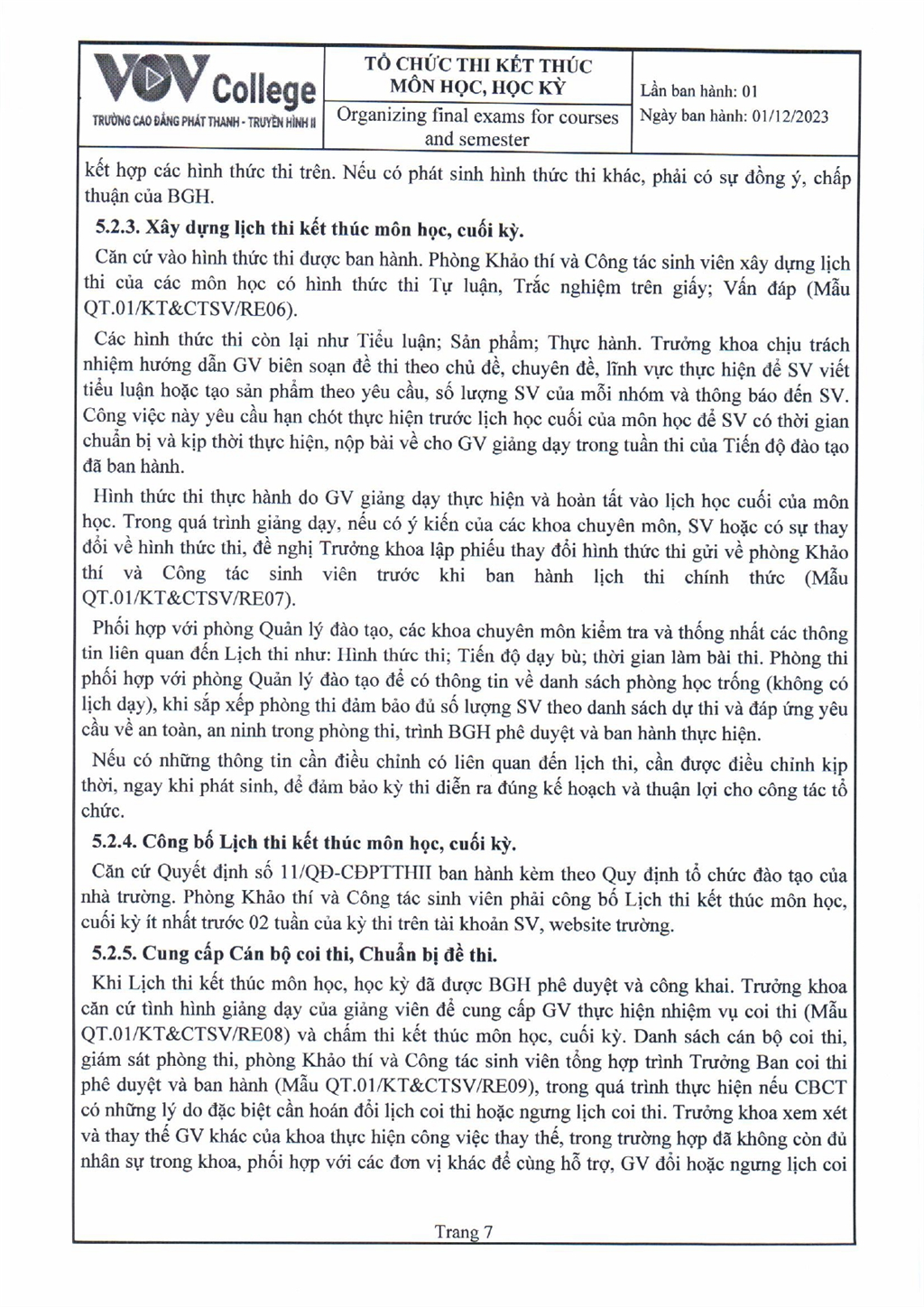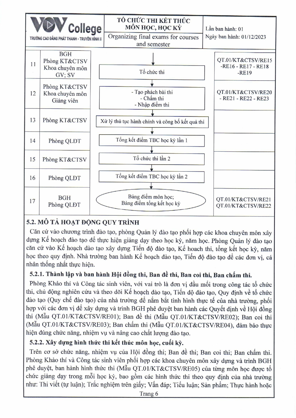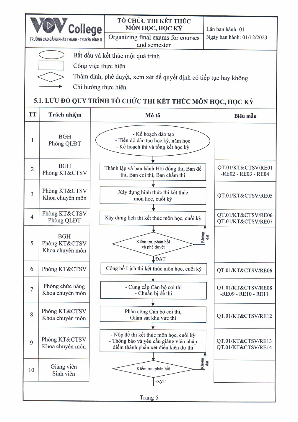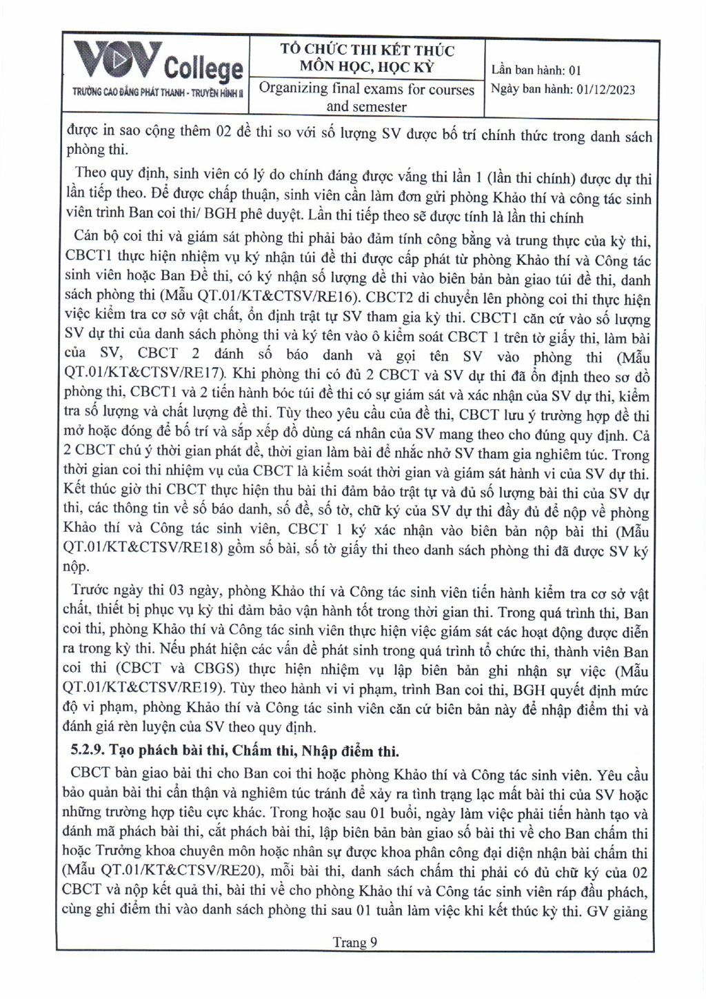 Quy trình tổ chức thi kết thúc môn học, học kỳ