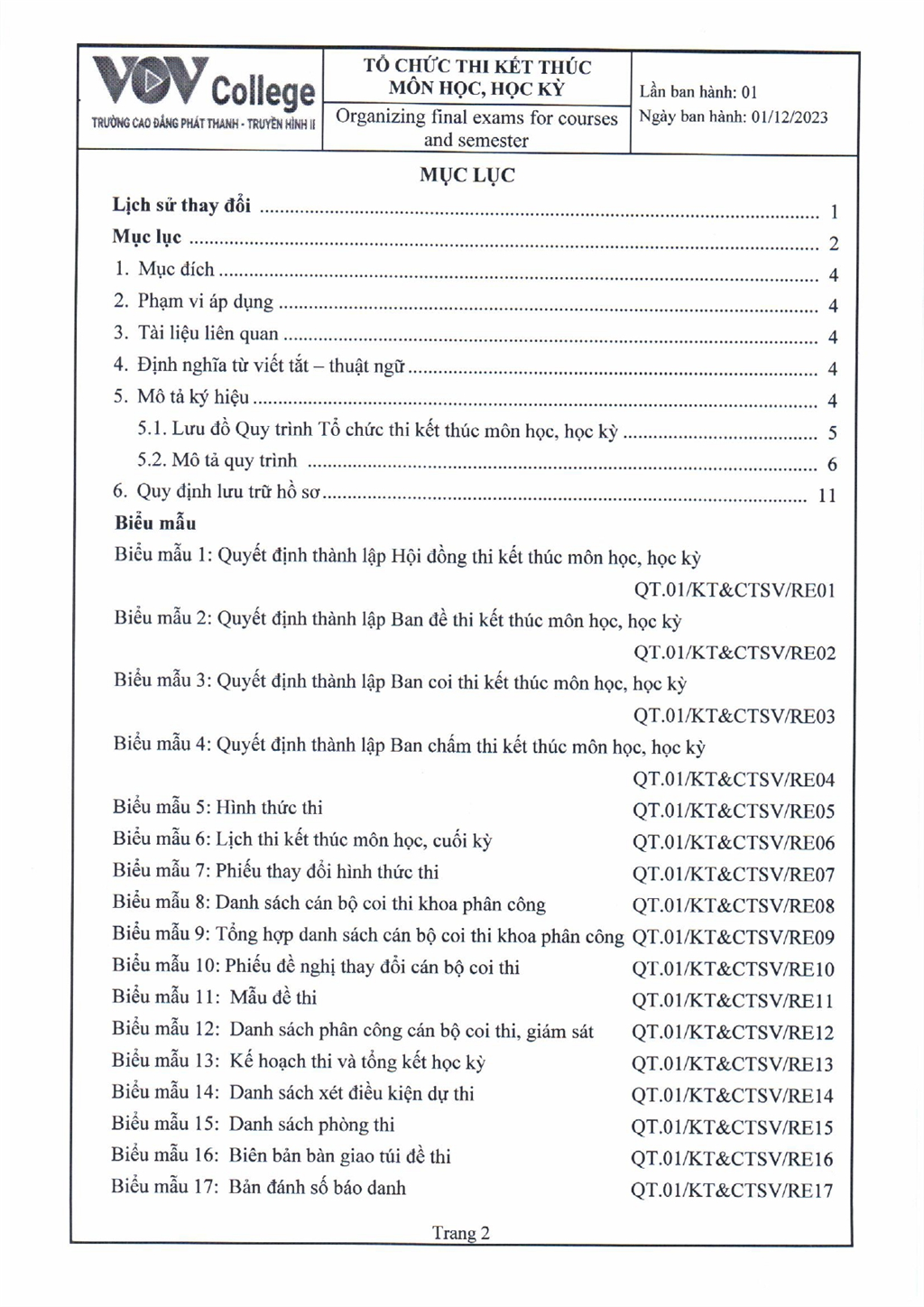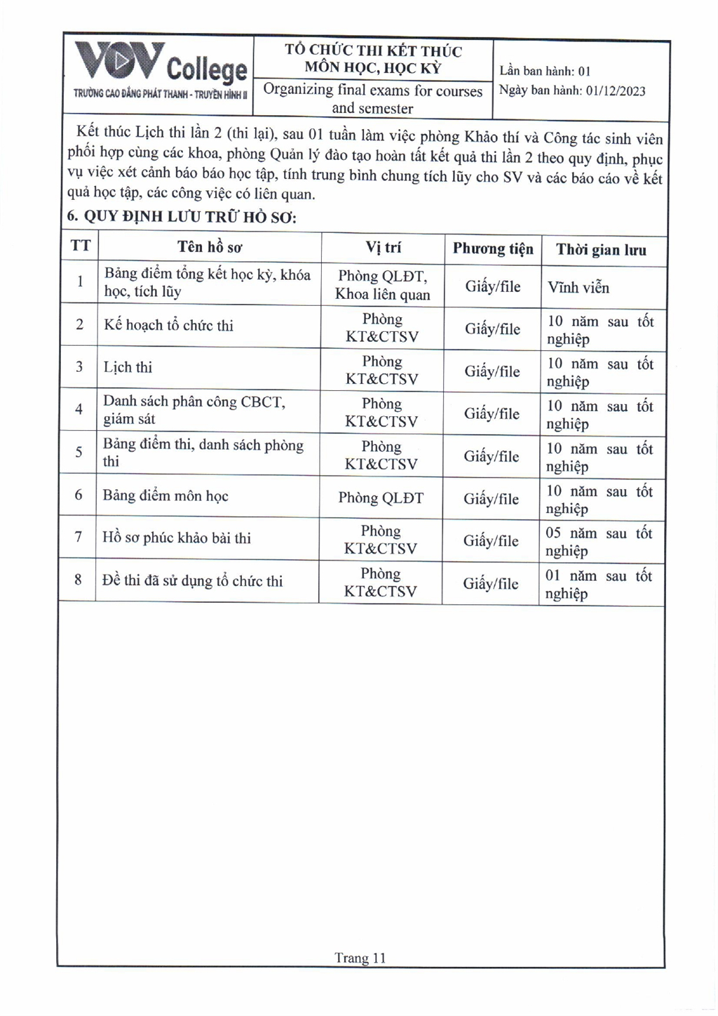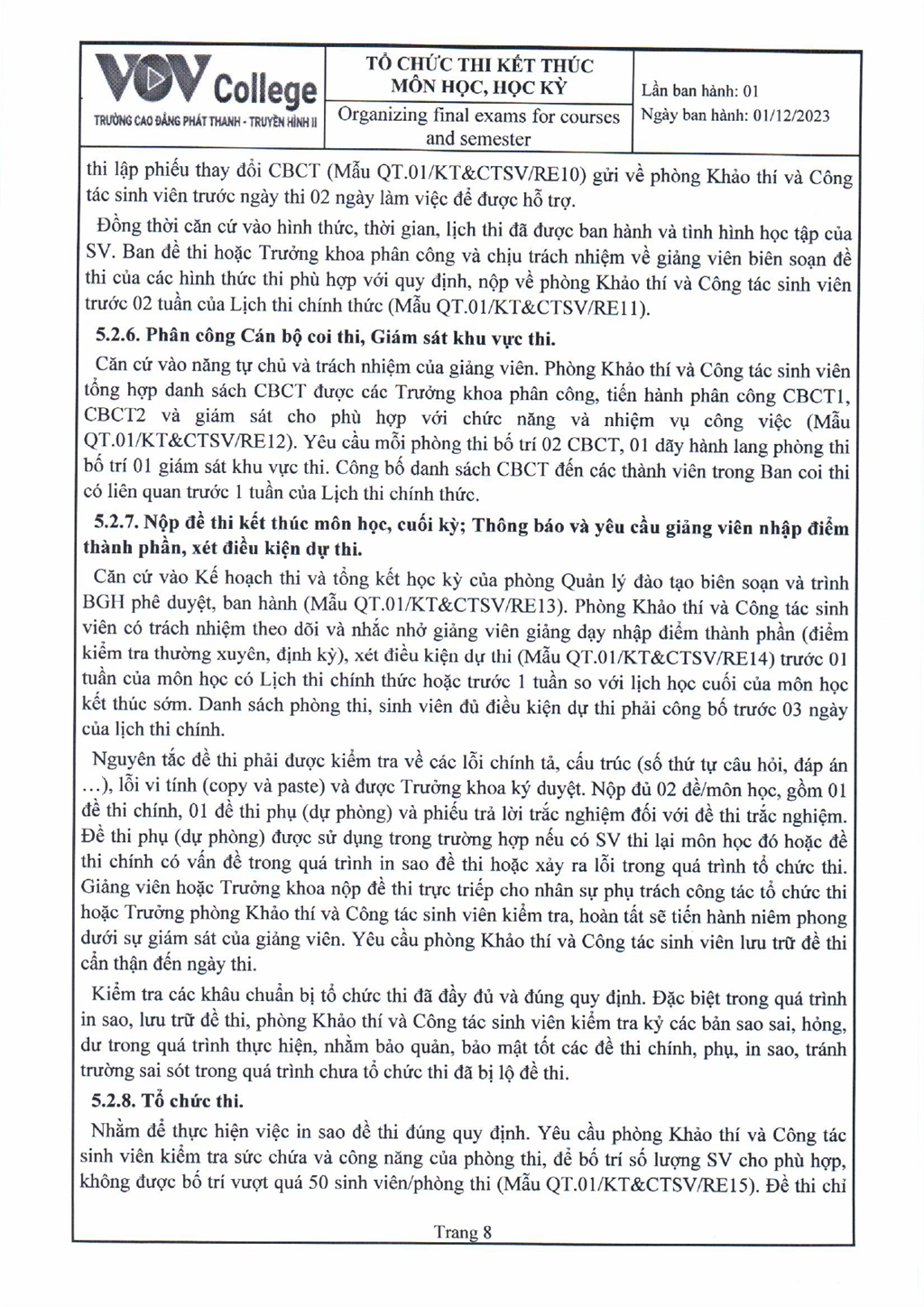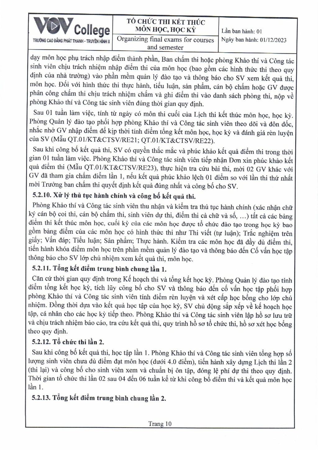 Quy trình tổ chức thi kết thúc môn học, học kỳ