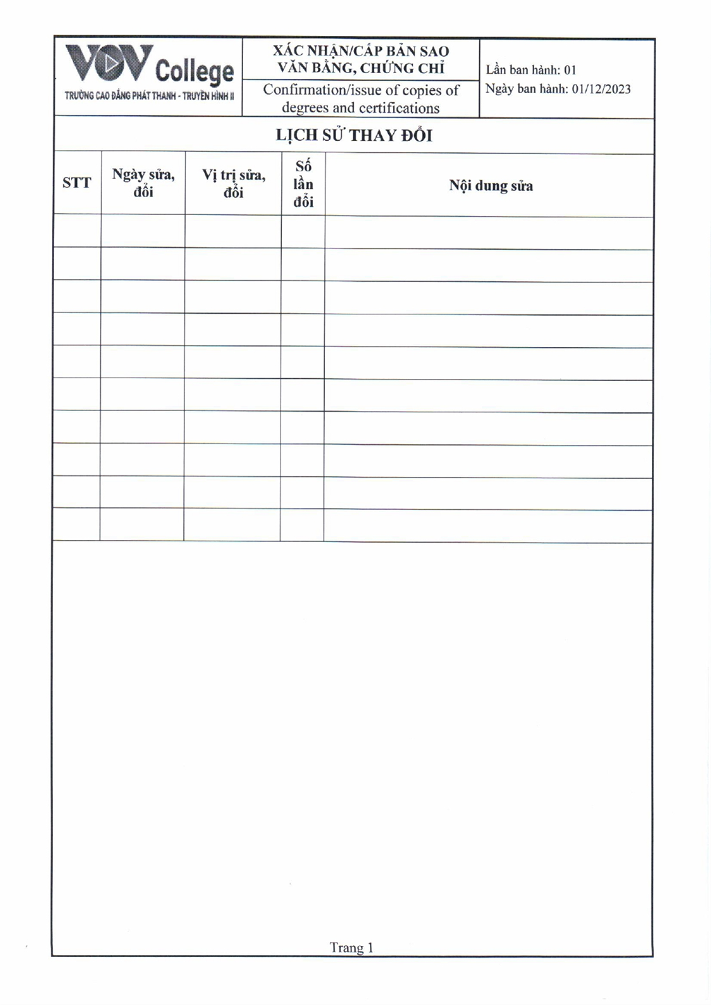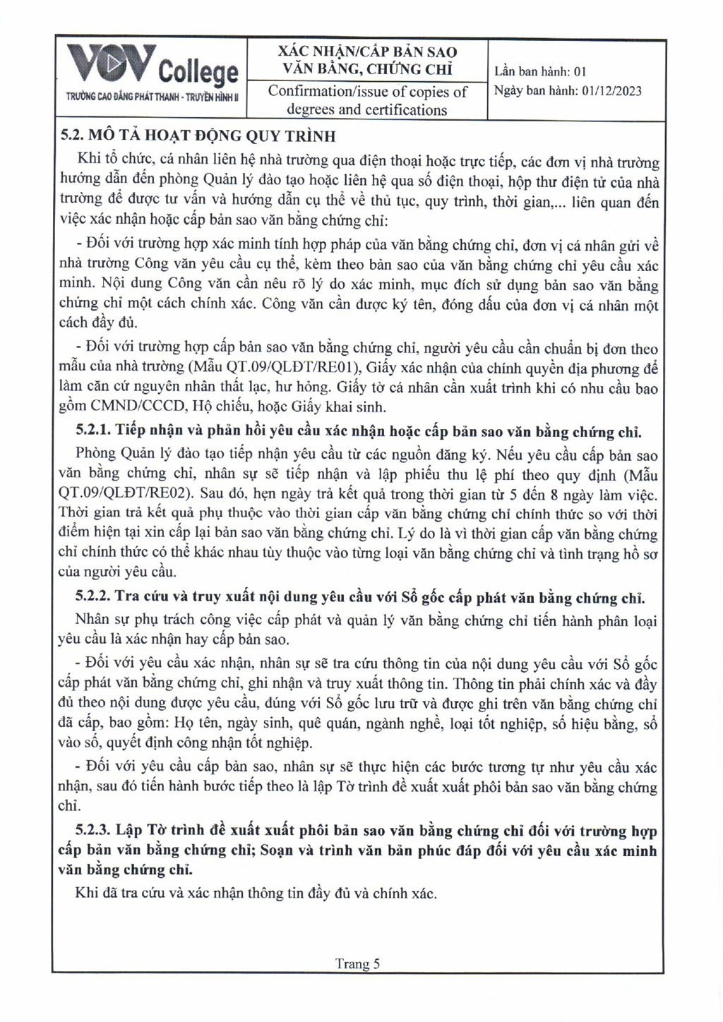 Quy trình xác nhận/ cấp bản sao văn bằng, chứng chỉ (Tải về)