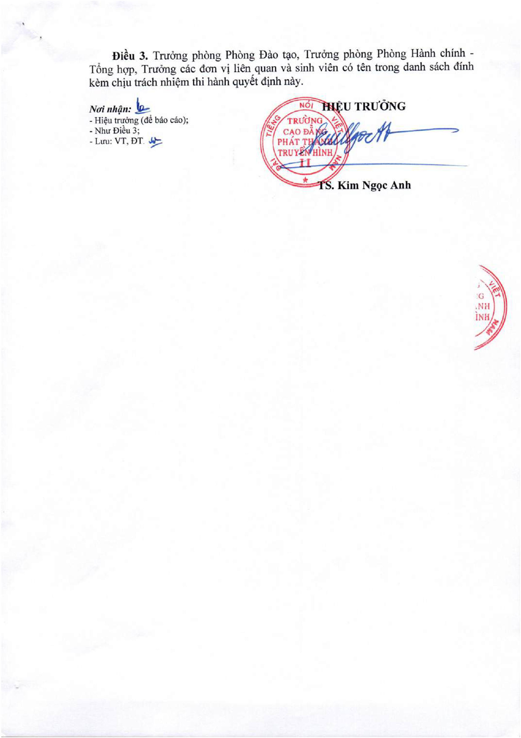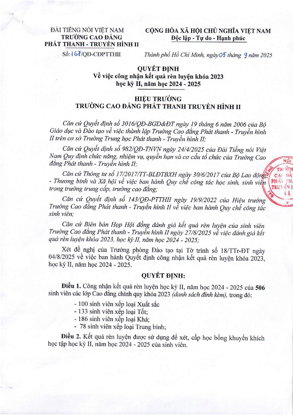 Quyết định về việc công nhận điểm rèn luyện khóa 23, học kỳ II năm học 2024-2025