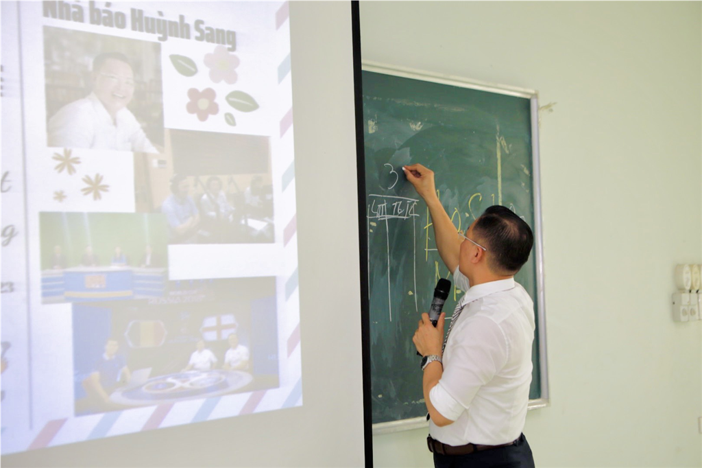 Nhà báo Huỳnh Sang chia sẻ các ví dụ, tình huống cụ thể phù hợp với thực tiễn.