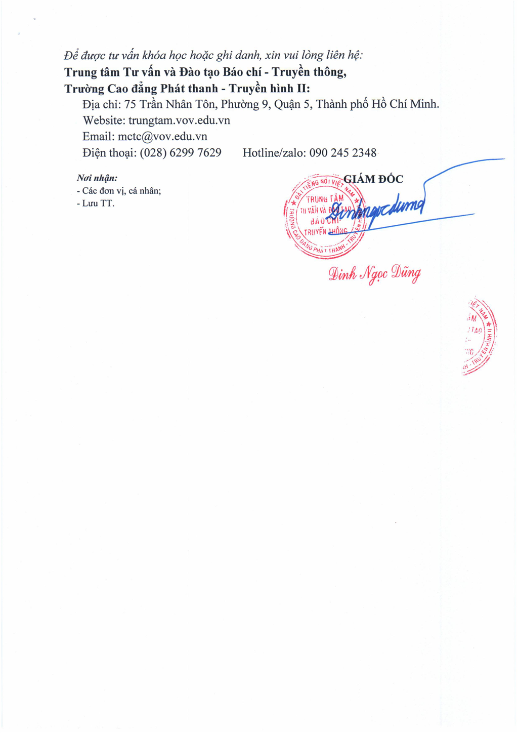 Thông báo chiêu sinh các khóa đào tạo ngắn hạn tháng 09/2022