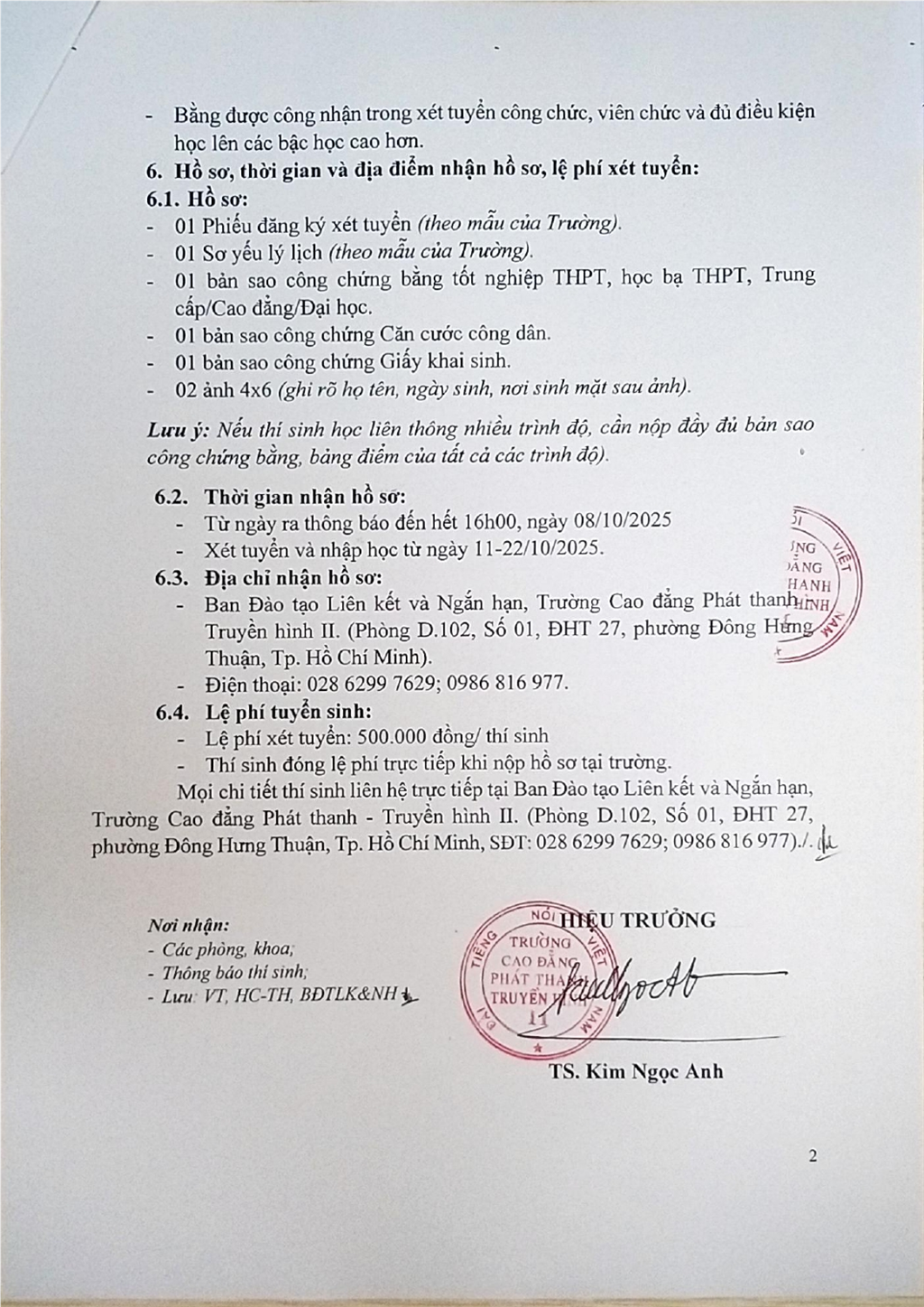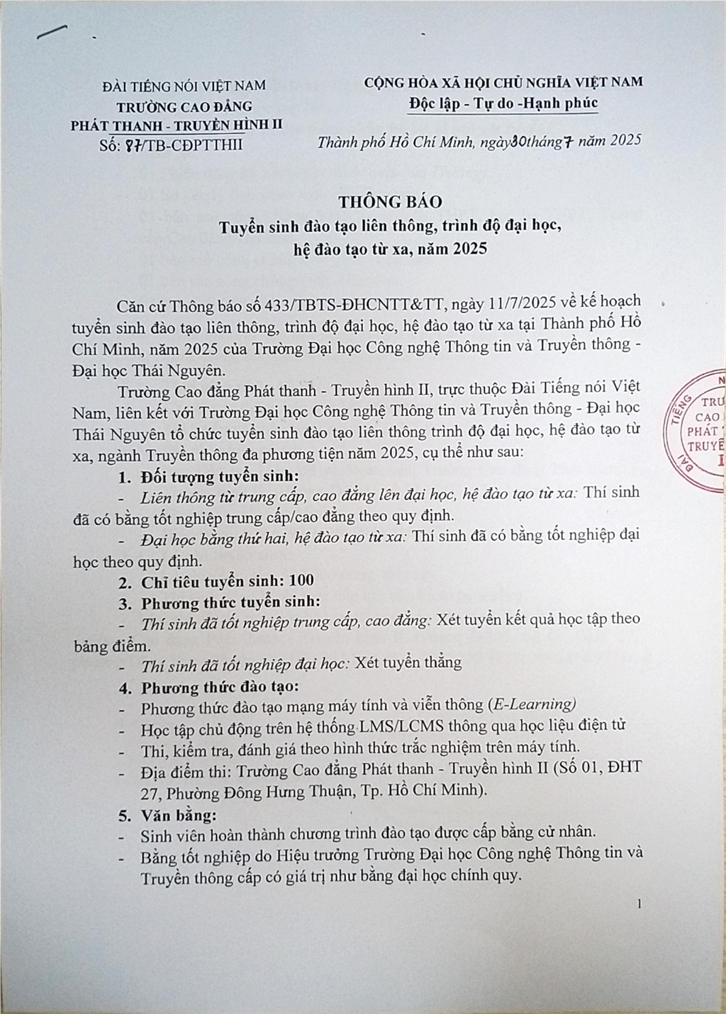 Thông báo tuyển sinh đào tạo liên thông, trình độ đại học hệ đào tạo từ xa, ngành Truyền thông đa phương tiện năm 2025