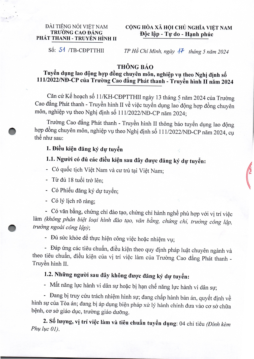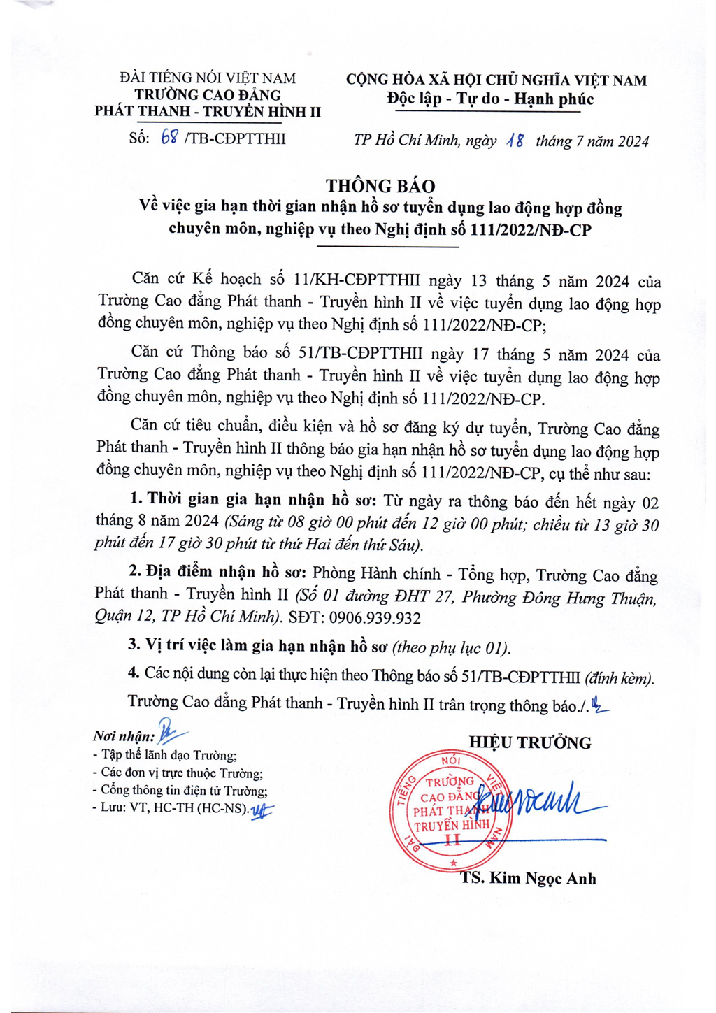 Thông báo về việc gia hạn thời gian nhận hồ sơ tuyển dụng lao động hợp đồng chuyên môn, nghiệp vụ theo Nghị định số 111/2022/NĐ-CP
