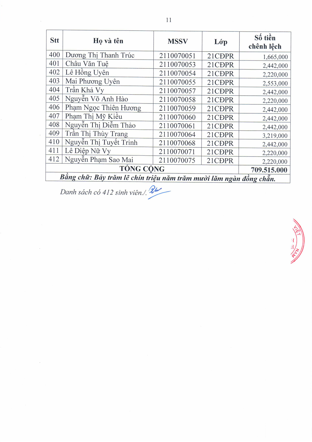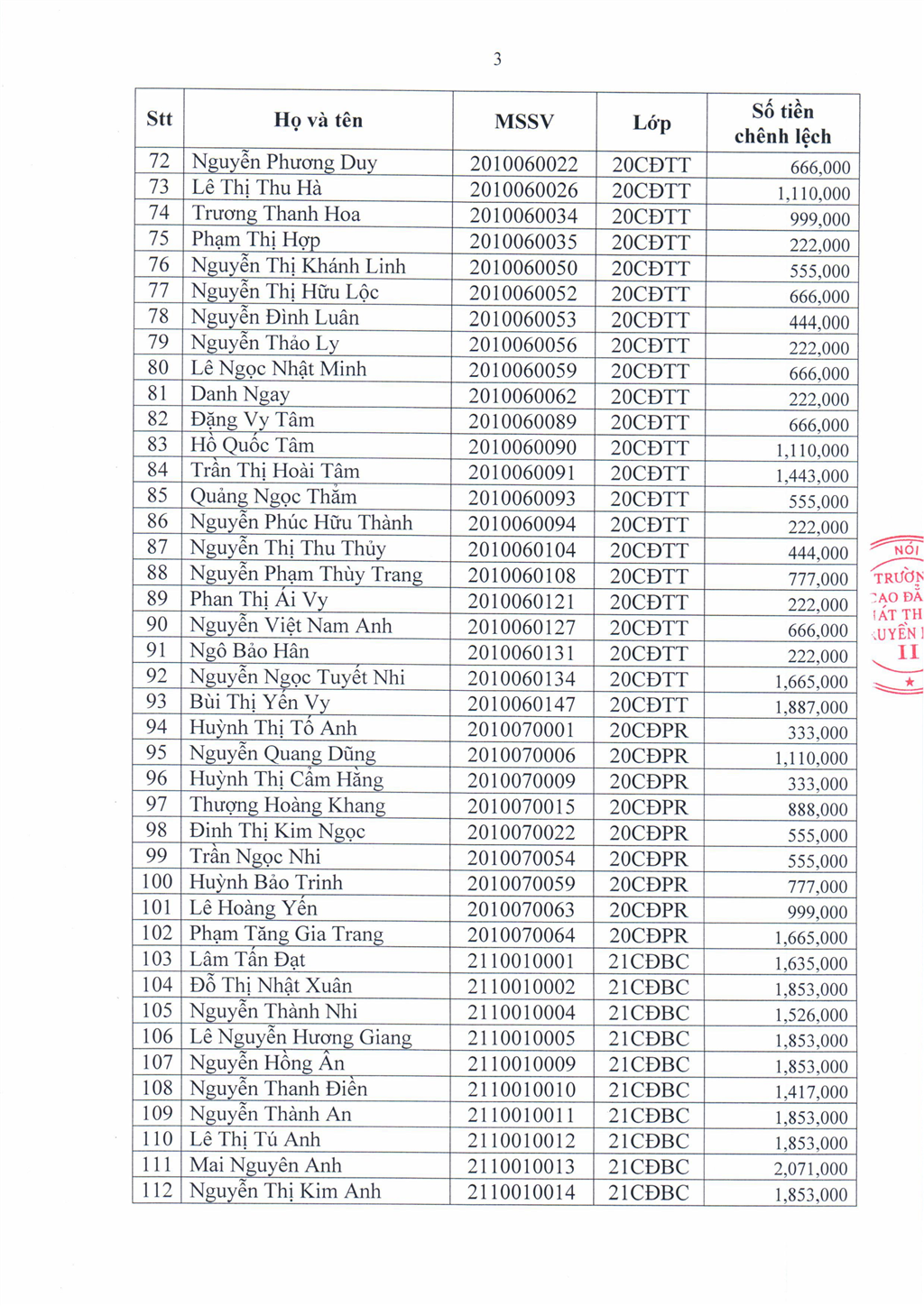 Thông báo về việc hoàn trả chênh lệch học phí học kỳ 1 năm học 2022 - 2023