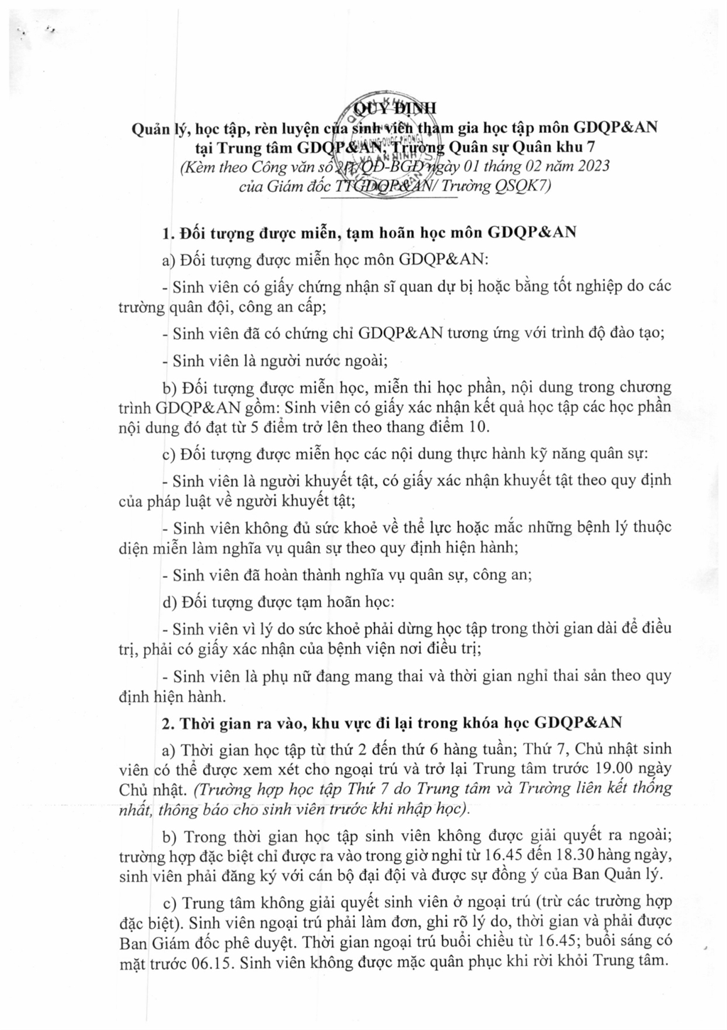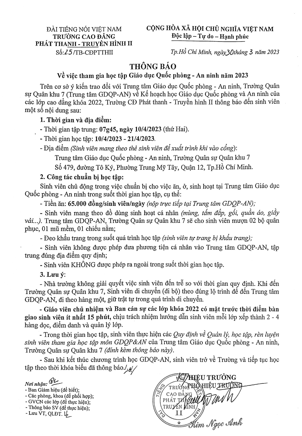 Thông báo về việc tham gia học tập Giáo dục quốc phòng - An ninh năm 2023