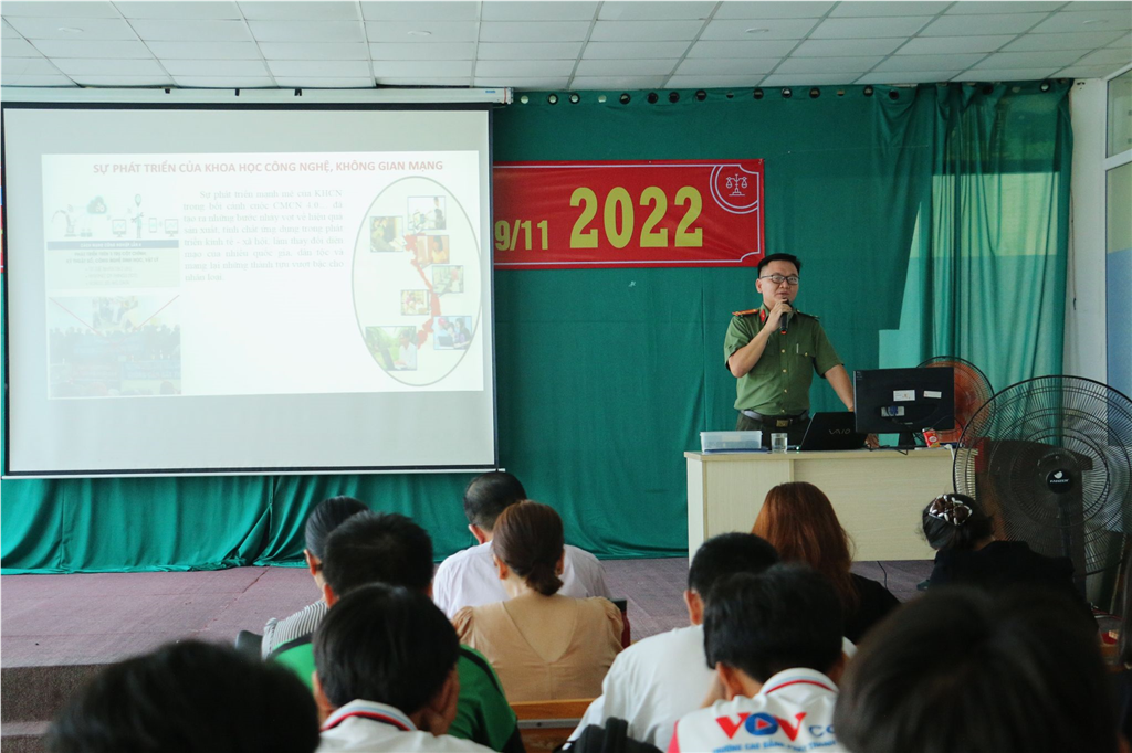 10/11/2022 Chiều ngày 09/11 vừa qua, Trường Cao đẳng Phát thanh - Truyền hình II đã tổ chức buổi nói chuyện chuyên đề pháp luật với nội dung Luật an ninh mạng cho toàn bộ cán bộ, giảng viên, nhân viên và sinh viên một số lớp tham dự. Đây là hoạt động thường niên của nhà trường nhằm hưởng ứng Ngày Pháp luật Việt Nam 09/11 hàng năm. Vị khách mời tham gia thuyết trình lần này là thượng tá, Thạc sĩ Đỗ Minh Kim - PTP3 - cục A05 - Bộ Công an.
