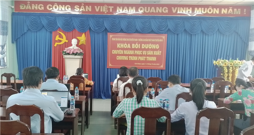 04/10/2022 Ngày 04/10/2022, Trung tâm Tư vấn và Đào tạo Báo chí - Truyền thông thuộc Trường Cao đẳng Phát thanh - Truyền hình II (VOV College) và Trung tâm Văn hóa, Thông tin và Truyền thanh huyện Cần Giuộc, Long An đã phối hợp tổ chức khóa bồi dưỡng “Chuyên ngành phục vụ sản xuất chương trình phát thanh” cho hơn 20 viên chức cấp xã làm công tác văn hóa, truyền thanh Cần Giuộc.