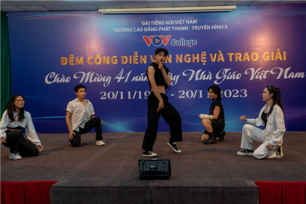Tối ngày 17/11, tại hội trường cơ sở 2 (Quận 12, TPHCM), trường Cao đẳng Phát thanh – Truyền hình II (VOV College) tổ chức Đêm công diễn văn nghệ và trao giải Chào mừng 41 năm ngày Nhà giáo Việt Nam (20/11/1982 – 20/11/2023).