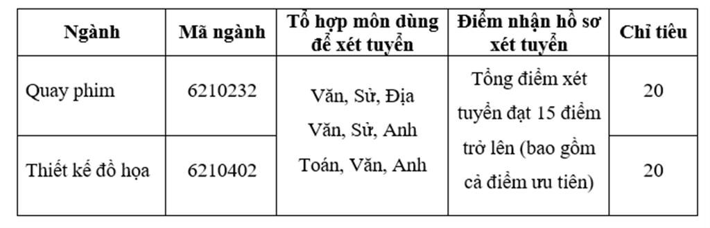 3. Ngành, điểm nhận hồ sơ và chỉ tiêu tuyển sinh: